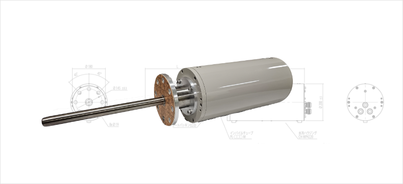 インパイルチューブを使用して高温炉内を監視します。100℃以下ハウジングと比較し小型化・軽量化を実現したことで利便性がアップしました。チューブ長、チューブ径、フランジ形状は既設の炉壁に合わせて製作することが可能です。炉内状況が確認でき、点検業務の見える化に役立ちます。